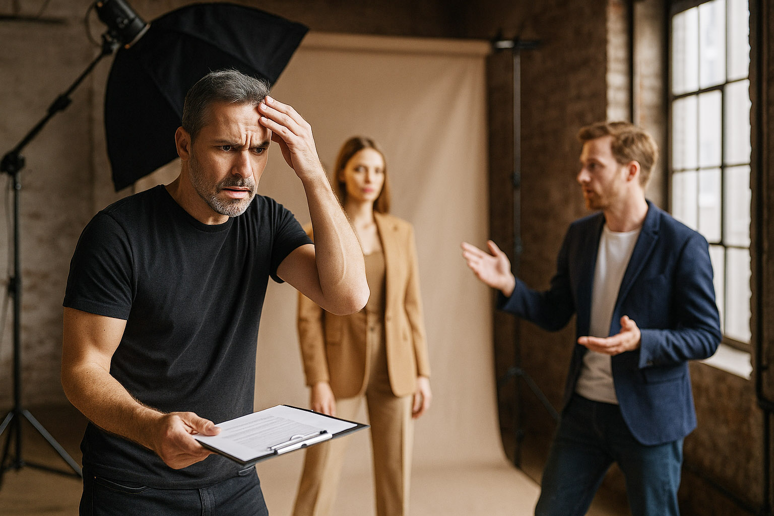 Ich kenne die Dynamik, wenn Entscheider am Set plötzlich mitreden wollen. Ich weiß, wie man freundlich führt, wie man Respekt zeigt und gleichzeitig den kreativen Prozess schützt. Ich bin nicht nur Dienstleister – ich bin Regisseur im besten Sinne. Ich halte den Raum. Ich mache möglich.